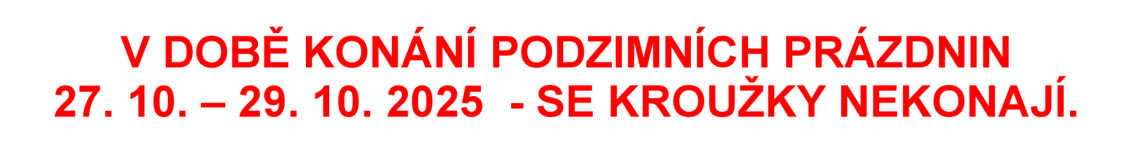 V DOBĚ KONÁNÍ PODZIMNÍCH PRÁZDNIN 27. 10. – 29. 10. 2025 - SE KROUŽKY NEKONAJÍ.